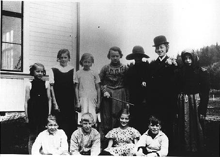 Sittande Folke Sundin, Sigfrid Persson, Elin Mehlin, Flickan Marianne Elfström, Britta Åström, Axel Strömbäck, Vilhelm Forsgren och Helmer Lidhammar. Stående: Märta Jonsson, Ivar Åström, Gerd Ytterbom, Gösta Lindberg, Anna-Brita Forsgren, Olof Elfström, Rudolf Åslin, Karl-Ivar Åström, Linnea Hansson, Olof Jonsson, Helen Johansson, Helmer Backing, Ruth Åström, Erik Lindh, Frida Elfström, Sigurd Åström, Frida Elfström d y och Sven Åslin