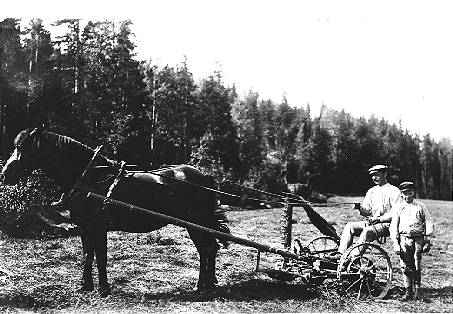 - Olof Åman i Åsen med sonen Mattias på slåttern år 1920.