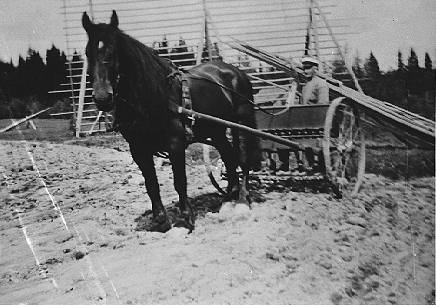 - Vårbruk i Svenåsen, Kväcklinge. Einar Lidin kör välten och Erik Vikholm sår med "triumfen".