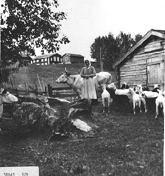 - Hanna Engström i sommarladugården i Åsen ca år 1910.