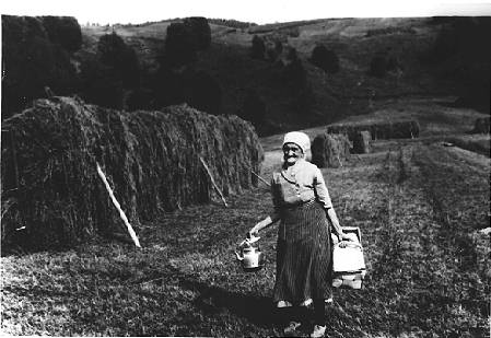 - Margareta Lidgren i Järkvissle kommer med kaffe till slåtterfolket år 1935.