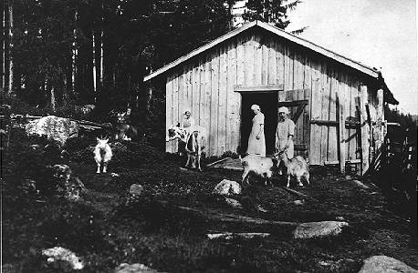 - Vid O Åmans och Em Henrikssons sommarladugård i Åsen ca år 1925.