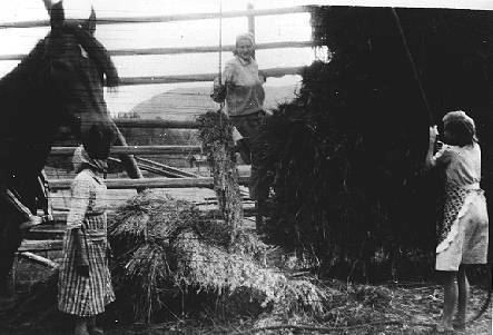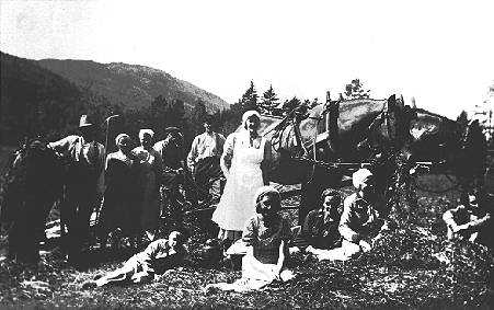 Vid hästen Harry Backlund, Åsen. I rovlandet Lars Åström med sonen Olle. Räfserskor: Gryta Byström, Hulda Eriksson och Emma Oldberg.