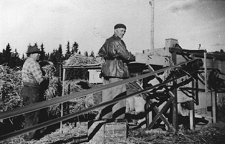 - Tröskning i Långliden med ett nytt självrensande tröskverk på 1940-talet.