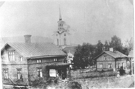 - Vy över byn före år 1911. Gamla kyrkan före år 1910. Tingshuset år 1910.