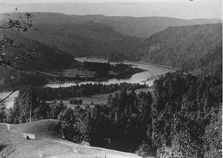 - Vy över Indalsälven och Vättaberget i slutet av 1920-talet