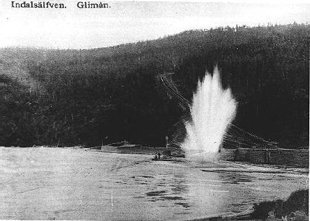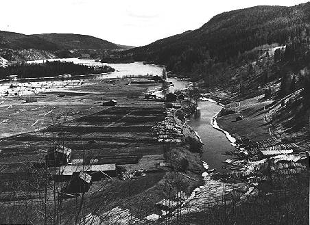 - Flottplatsen Glimån i början på seklet med nedre delen av den torra virkesrännan.