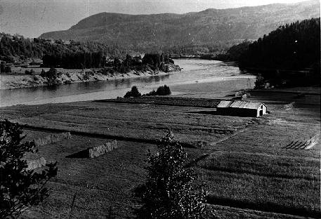 - Vy över "Bodaänget". I bakgrunden Västanå.