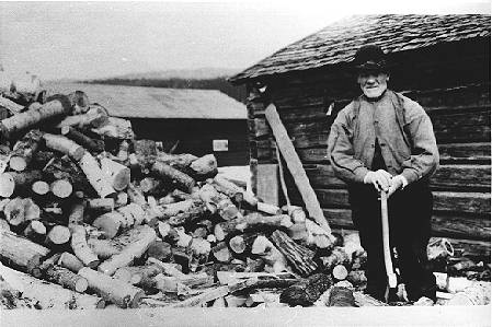 - Jonas Uhlin kallad "Jonke på Mon" på vedbacken i Åsen ca år 1920.