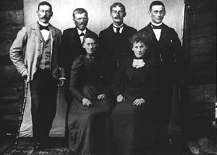Från vänster Sittande: Ingrid Andersson och Britta Andersson (Blomkvist) Stående Jonas Andersson, Erik Säll, August Nilsson och Nils Andersson.