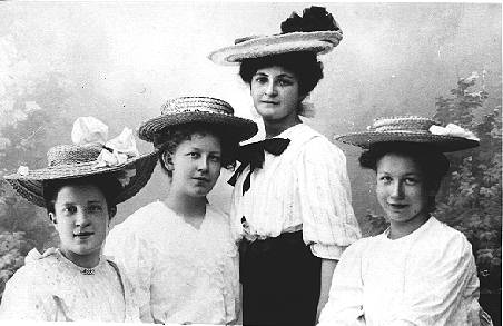 - Unga sköna damer i eleganta stråhattar i början av 1900-talet.