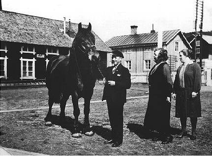 - Gösta Lindberg med häst. Fru Lidberg från Amerika och Jenny Lidberg år 1930.