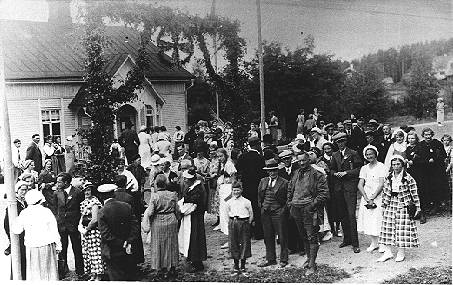 - Missionsförbundsmöte omkring år 1915. Fotot taget bakom västra kapellet.