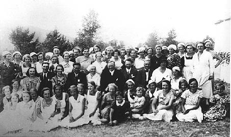 - Alla medhjälpare framför utspisningstältet vid ungdomskursen år 1934.