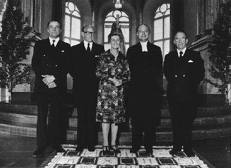 Kyrkvärdar Gunnar Mehlin, Sigurd Åström, Lenah Bertlin och Gösta Lindberg kyrkvaktmästare.