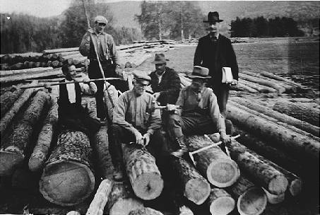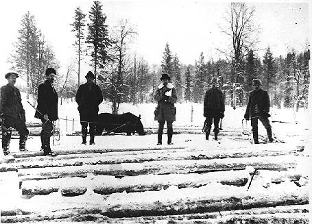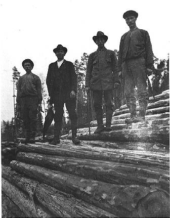 Alfred Sundman, Harry Backlund och Jonas Lindbäck rullade timret. Axel Lindgren och Ernst Lind var mätare och Maurits Lindgren skrivare.
