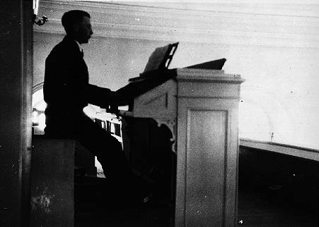 - Oskar Åslin spelar på kyrkorgeln på 1930-talet
