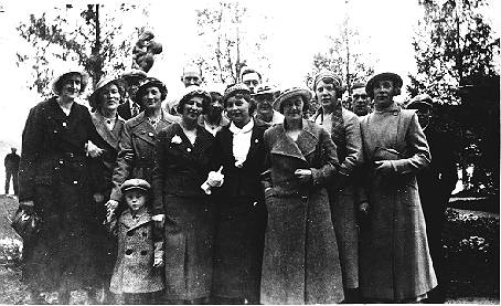 Från vänster, rad 1: Hildur Lindholm, Vega Blomkvist och Brita Unander. Rad 2: Märta Jonsson, Greta Strömbäck, Karin Öhnedal, Märta Larsson, Agnes Thorén, Frida Elfström och Brita Åström. Rad 3: Rudolf, Axel Strömbäck, Axel Unander, Sven Åslin och Gösta Lindberg. Pojken på bilden tillhör Greta Strömbäck.