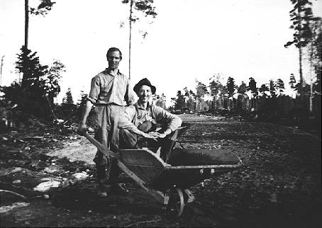 - Vägarbete år 1947 på domänverkets mark nuvarande "Gussjövägen".