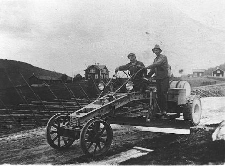 - Den första väghyveln i Liden år 1924. Observera att det måste var två förare.
